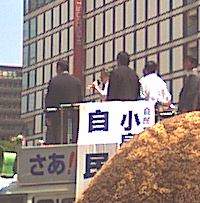 聞いてみたら12時から三越前で演説だって。