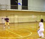 青+白のバドミントン対決