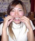鼻の下に見えるのは、輪ゴムでかけた50円玉。意味不明。
