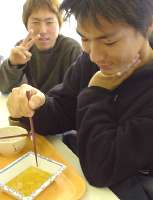 正解は「汁に浮いてる油を1つにまとめようとしている」でした。