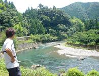 向こう岸は浅瀬になっているからそこを歩いて上流に行き、