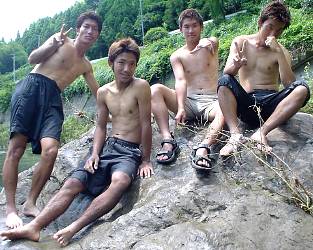 K野+Sらき+Tく+Fじこ@川の中の岩の上