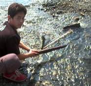 =M岡「水をせき止めて魚を取る」=
